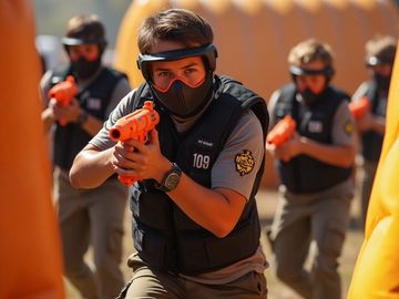 Gear up like a pro with our Tactical Upgrade Pack—featuring high-quality Nerf-compatible vests, team-color arm bands, and full-face tactical masks.